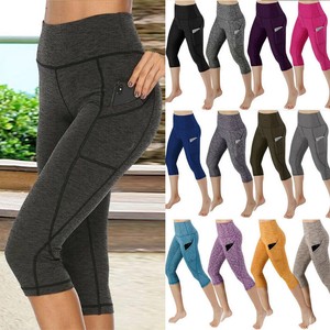 Damen Abgeschnitten 3 4 Lange Baumwolle Capri Leggings Hose Fitness Stretch Damenmode Kleidung Accessoires Damenmode