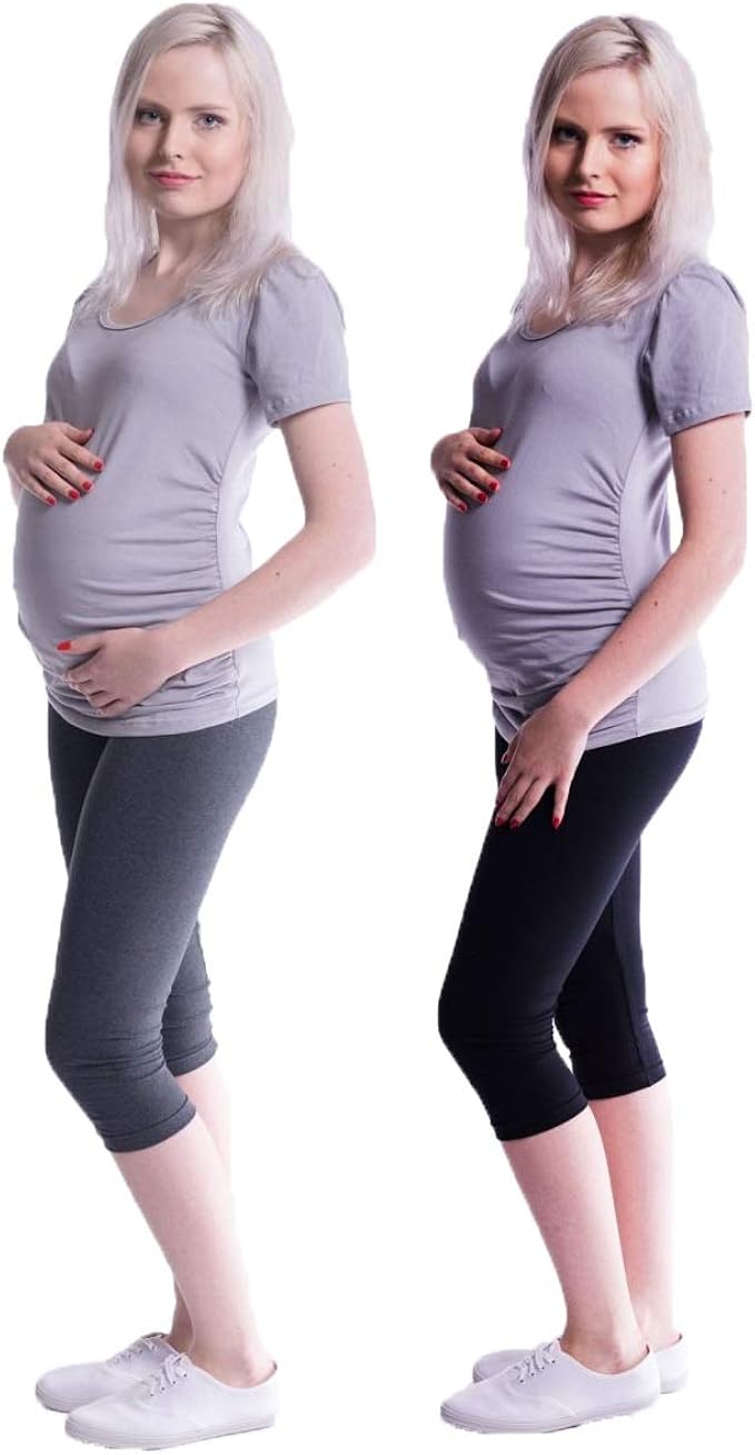 Belady Damen Leggins Umstandsleggins Fur Schwanger 3 4 Lange Capri Aus Baumwolle Hose Viele Farben Schwarz Grafitgrau Dunkelblau Grau Weiss Braun