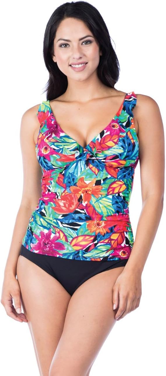 Chaps Women S Rouched Front Ruffle Sleeve Tankini Swimsuit Top Multi Polynesian Floral 6 Amazon Ca Clothing Accessories