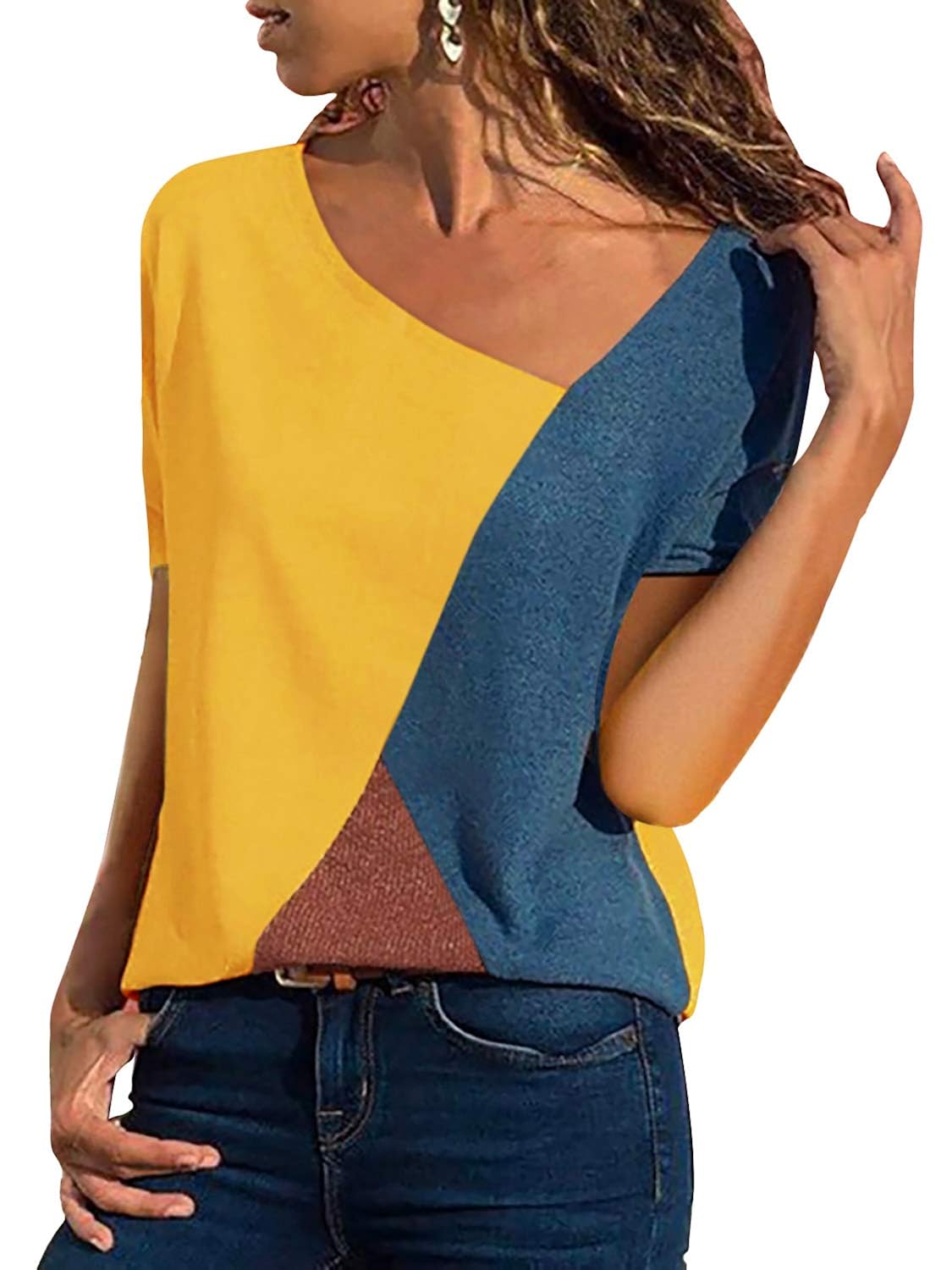 Damen Casual Patchwork Farbblock Langarm T Shirt Asymmetrischer V Ausschnitt Langarmshirt Tops Sweatshirt Tunika Top Pullover Bluse Oberteil Tops T Shirts Blusen Blusen Tuniken