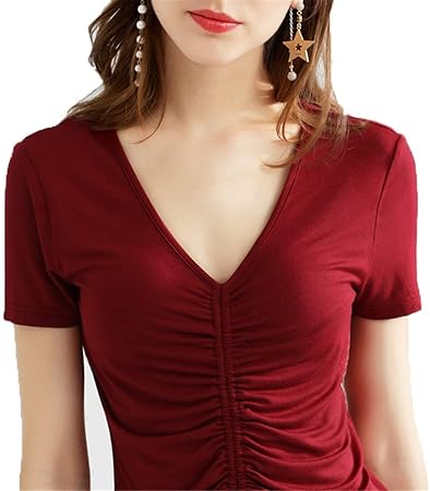Damen T Shirt Tops Stretch Spandex T Shirt For Frauen Mit Tiefer V Ausschnitt Kurzarm Basic Enges T Shirt Tops Sommer Beilaufige Weiche Ashionable Kleidung Farbe Wine Red Size Xxxl Amazon De Kuche Haushalt