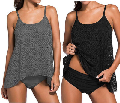 T18 Trendiger Figurumspielender Damen Tankini Schwarz Grau Neu Grosse 38 66 Ebay