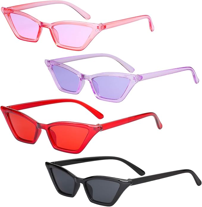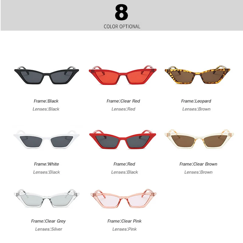 Ashop Kleine Rahmen Skinny Cat Eye Sonnenbrillen Fur Damen Bunte Linse Mini Schmale Platz Retro Cateye Vintage Sonnenbrille A Amazon De Bekleidung