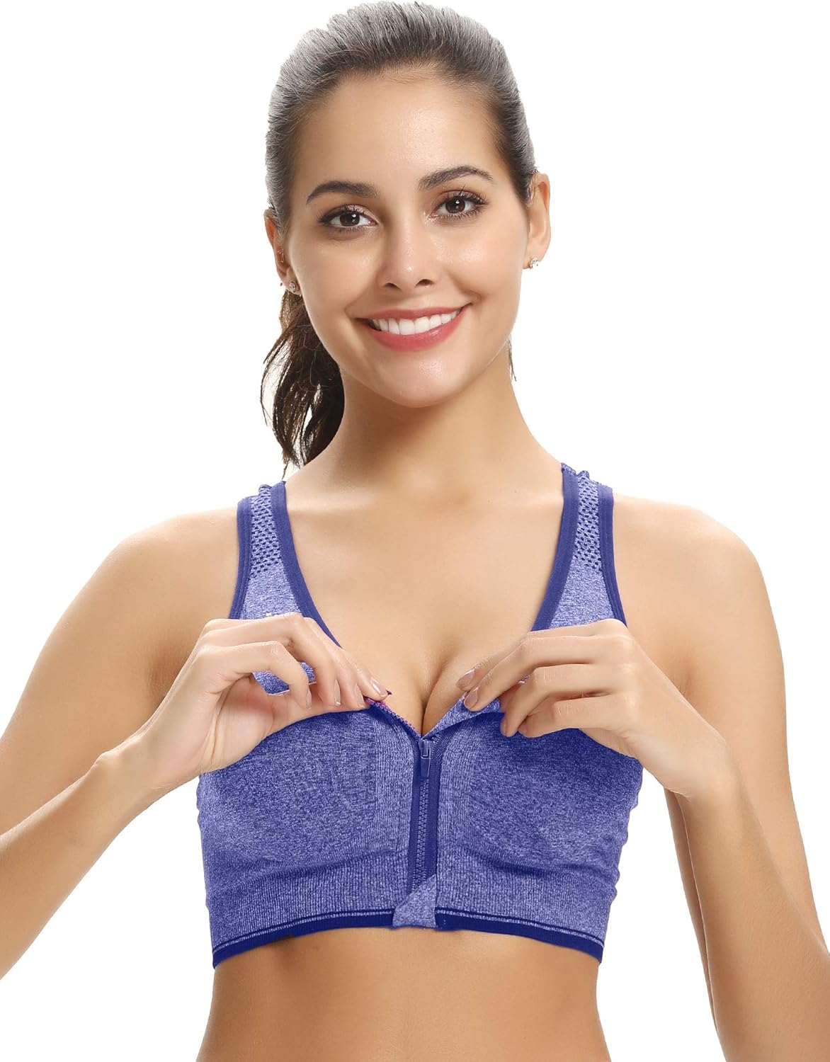 Aibrou Damen Sport Bh Starker Halt Grosse Bruste Reissverschluss Gepolstert Bh Ohne Bugel Push Up Fur Fitness Training 1 2 3er Pack