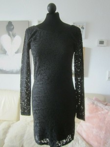 Ajc Damen Kleid Langarm Kurz Rundhals Spitzen Schwarz Gr 38 Neu Ebay