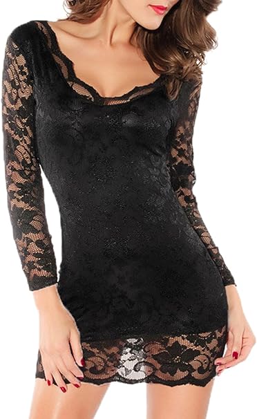 R Dessous Langarm Minikleid Party Kleid Dress Abendkleid Schwarz Spitze Groesse L Amazon De Bekleidung