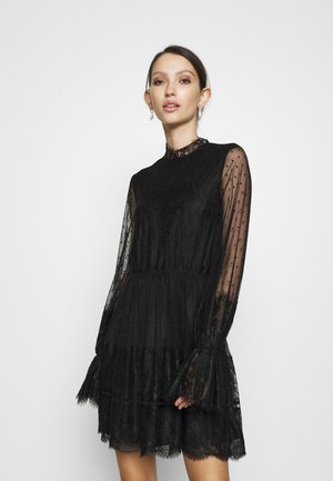 Schwarze Spitze Langarm Kleid Farbe Gold