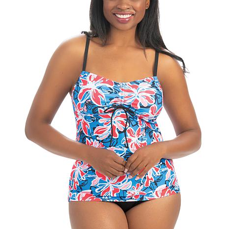 Dolfin Aquashape Wildflowers Print Tie Front Tankini Top Hsn