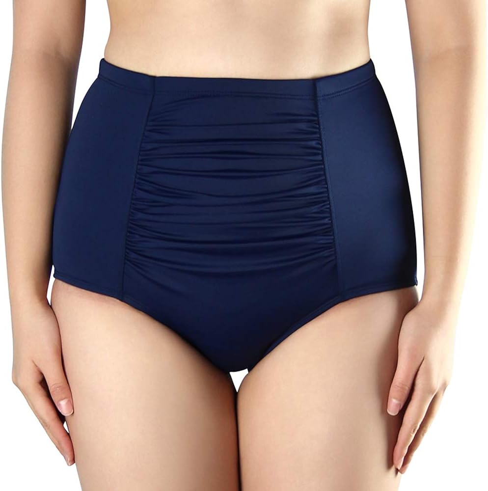 Micosuza Womens High Waisted Bikini Bottoms Shape Control Fold Swim Brief Tankini Bottoms Clothing Shoes Jewelry Swimsuits Cover Ups