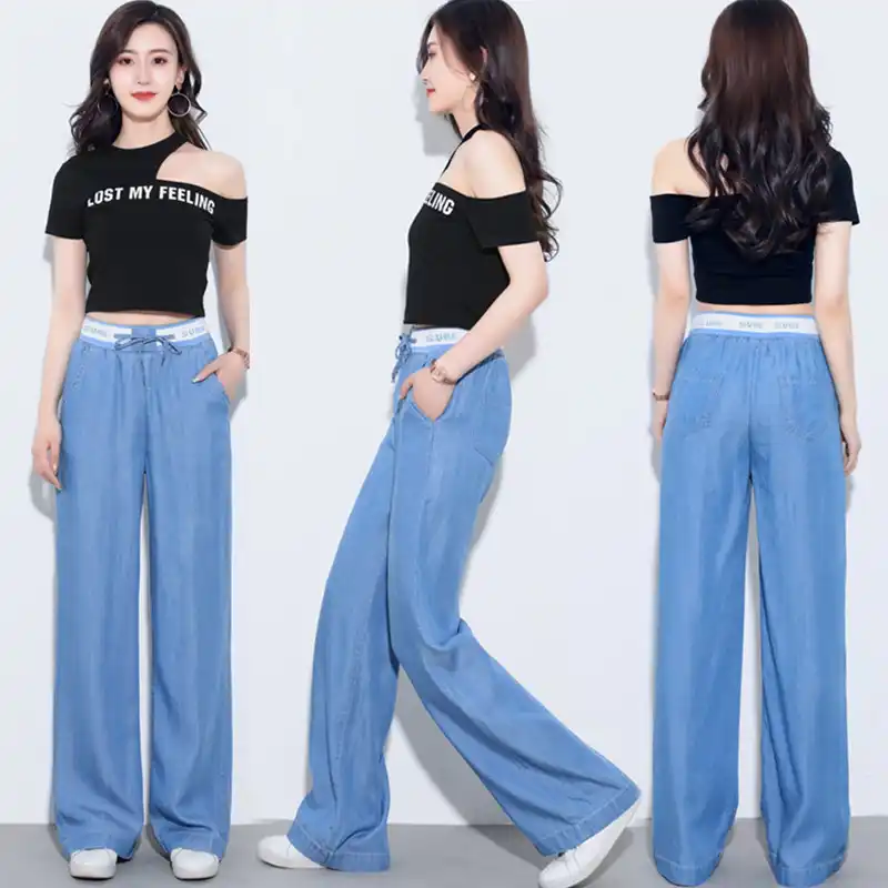 Mode Jeans Sommer Dame Dunne Breite Bein Denim Hosen Frauen Hohe Taille Gerade Lose Hosen Plus Grosse Lyocell Jeans Hosen Caprihosen Aliexpress