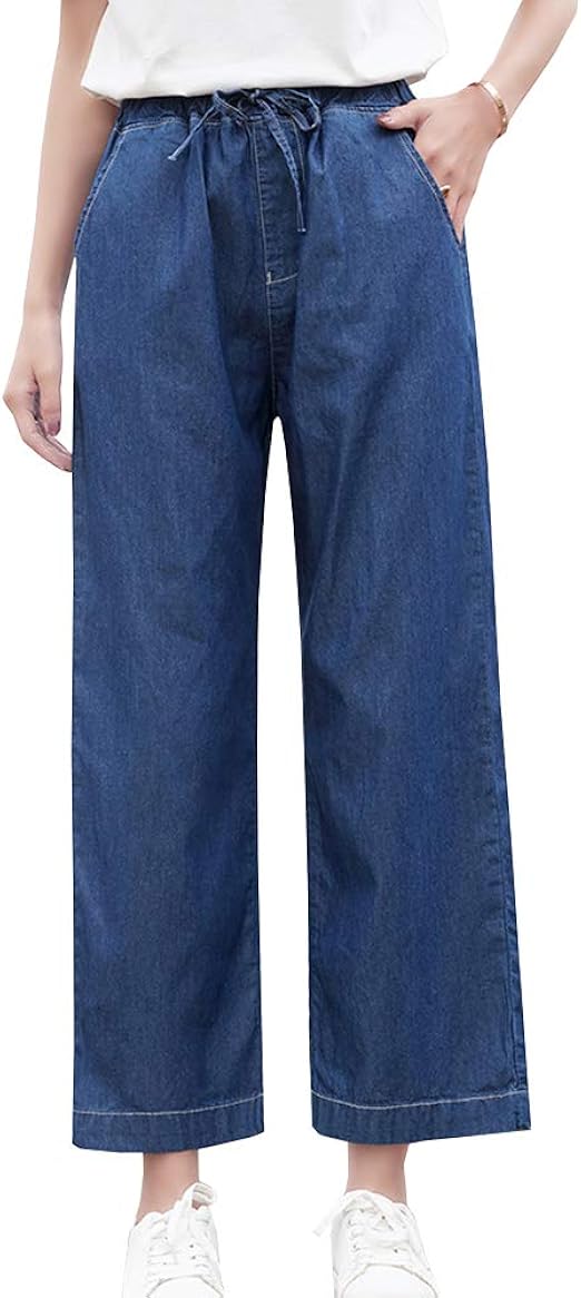 Shengwan Damen Sommer Dunne Jeans Hose Baggy Relaxed Jeanshose Elastische Taille Amazon De Bekleidung