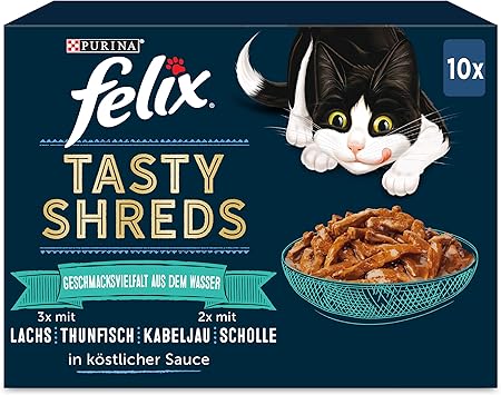 Felix Tasty Shreds Katzenfutter Nass In Sauce Geschmacksvielfalt Aus Dem Wasser 6er Pack 6 X 10 X 80g Amazon De Haustier