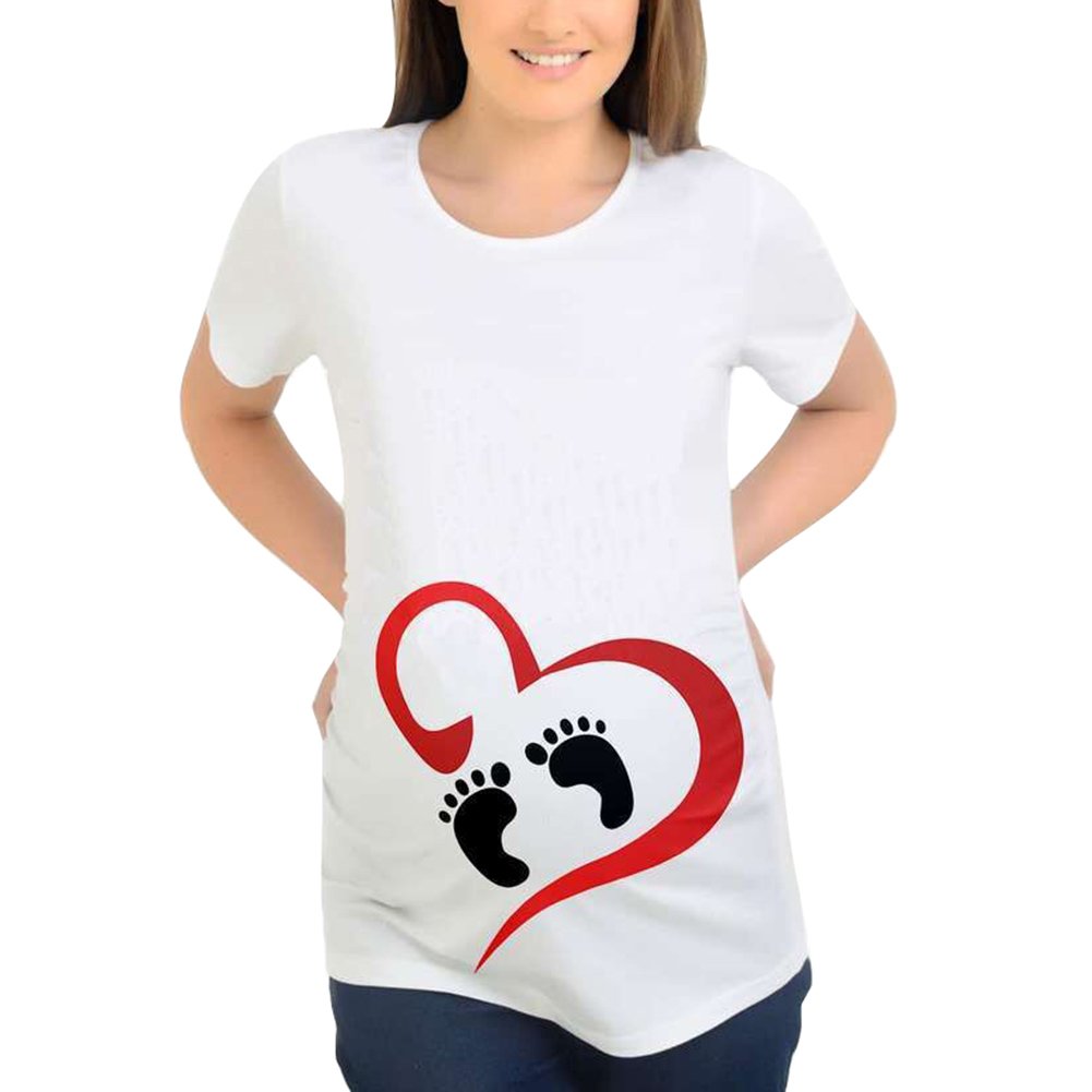 Damen Lustige Witzige Susse Umstandsmode Umstandsshirt Mit Motiv Schwangerschaft T Shirt Schwangerschaftsshirt Fussabdrucke Baby Mit Herz Kurzarm Bekleidung Cerocero Mx