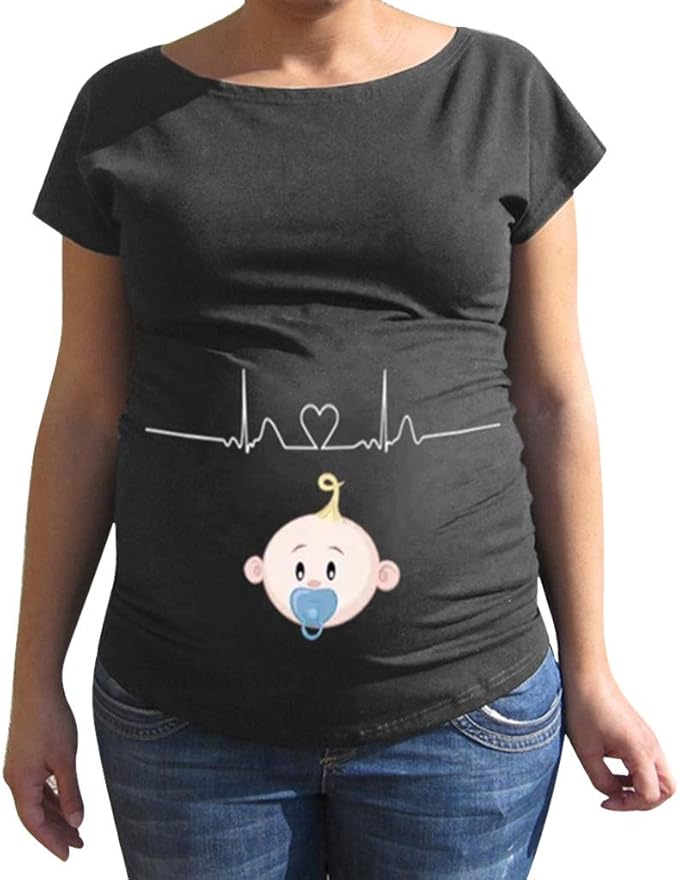 Schwangere Damen Mutterschaft Print Umstandsmode Brief Drucken Umstandstop Casual Schwangerschaft T Shirt Rundkragen Umstandshirt Lustig Bauchfrei Oberteil Basic Stillshirt Elastische Oberteil Amazon De Bekleidung