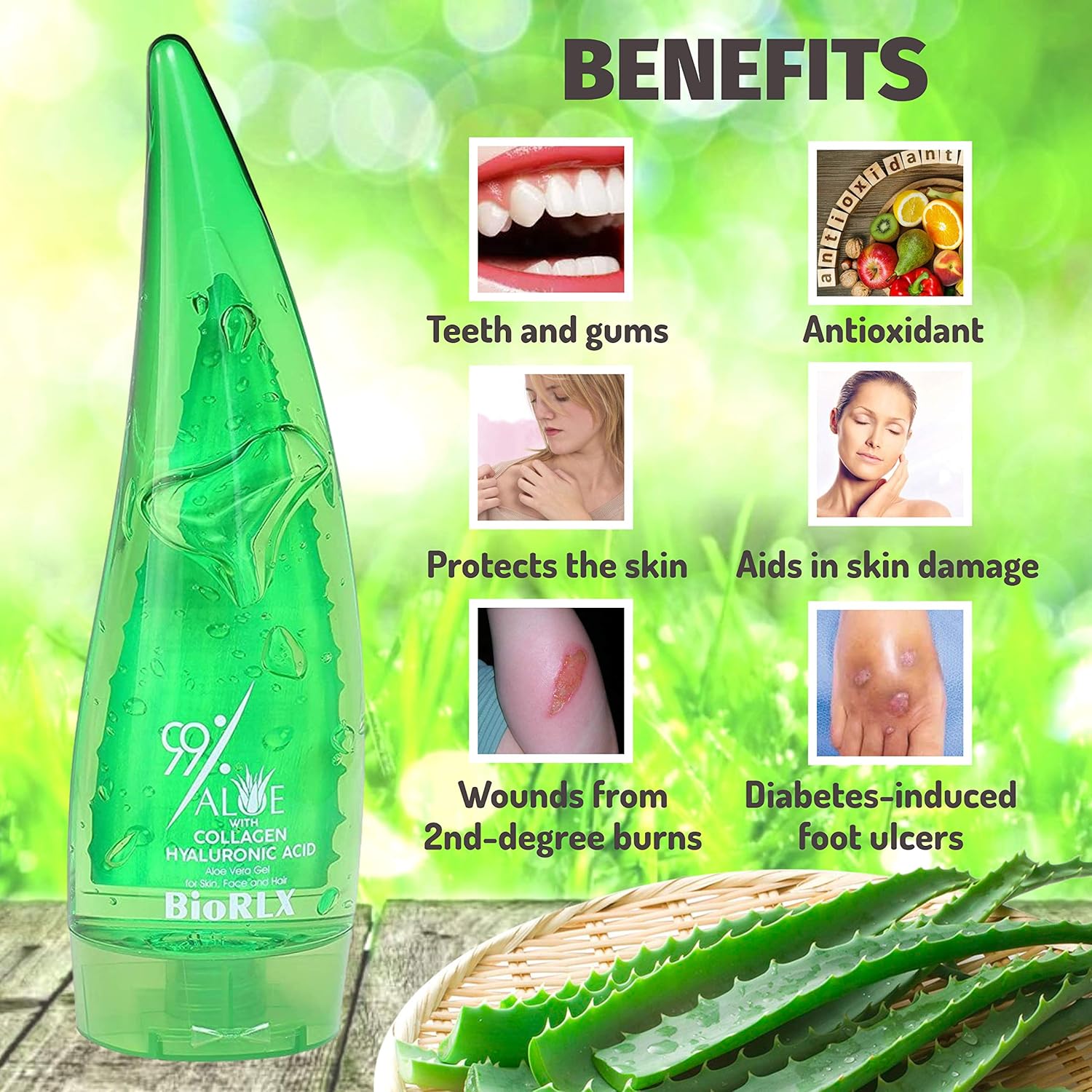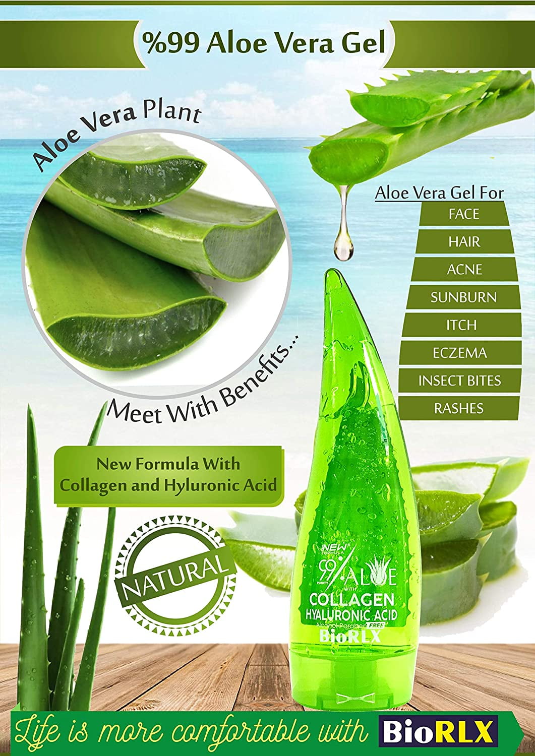 Collagen, Hyaluronic Acid, Cream Yüzünüz ve Elleriniz için MÜKEMMEL 7’Lİ!. This multifunctional soothing gel can be used on various body parts such as face, neck, arms, legs, and hair BioRLX is proud to provide one of the best and highest quality Aloe Vera Gel on the market This soothing gel is made from natural and pure ALOE VERA which rapidly absorbed by the skin for soothing and moistur. Free 2day shipping Buy BioRLX 99% Purity Aloe Vera Gel with Collagen and Hyaluronic Acid for Face, Body and Hair & Soothing, Moisture, Sun Burns, Anti Wrinkle, Anti Aging, Rashes, Razor Bumps, Dry Skin 27 oz Travel Size at Walmartcom.
