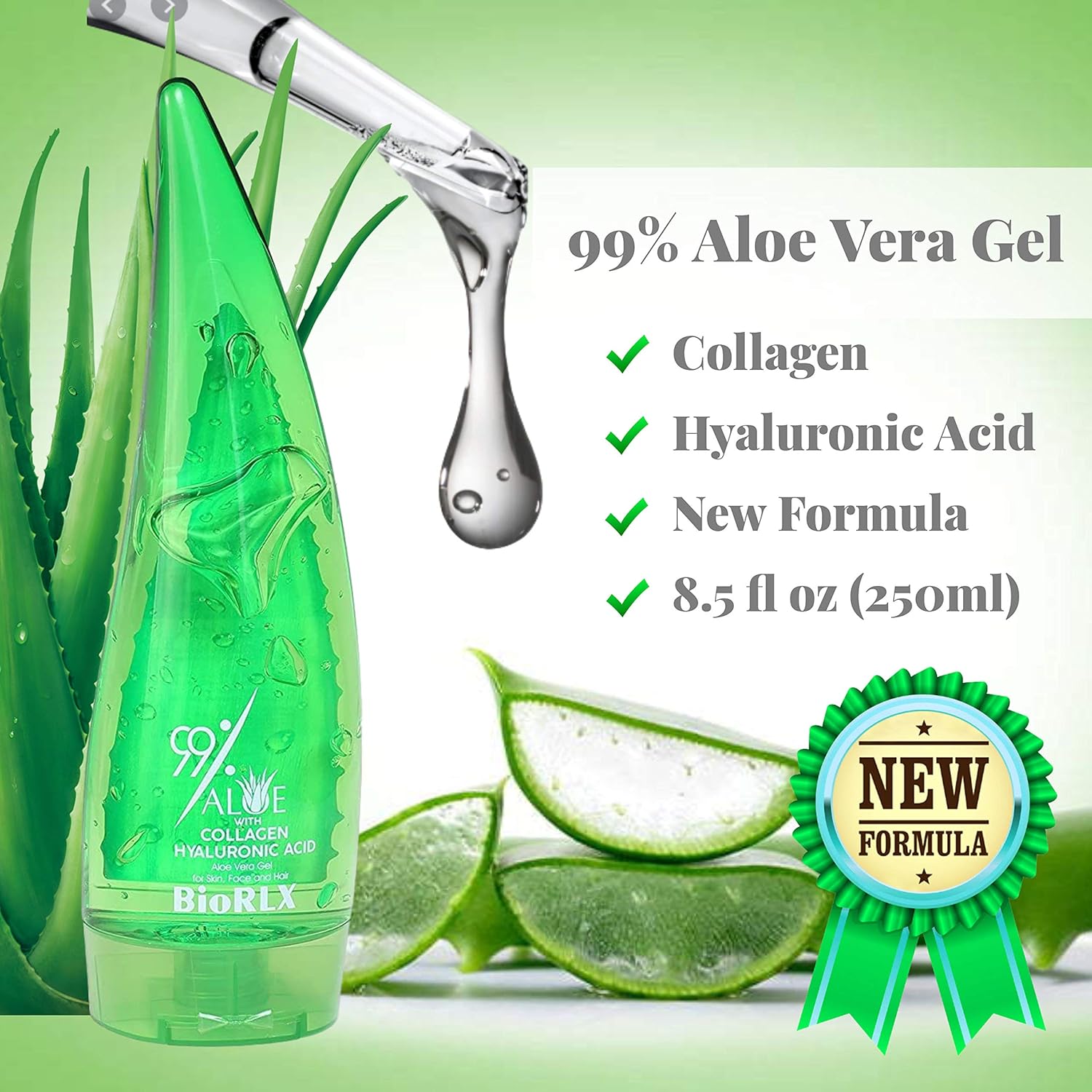 Amazon Com Biorlx 99 Aloe Vera With Collagen And Hyaluronic Acid Aloe Vera Gel For Face Anti Aging Hair And After Sun Skin Care Kid And Pet Safe Twin Pack Of 8 5