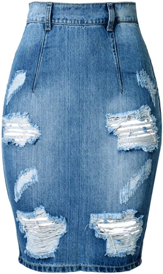Sommer Women S Hoher Bund Ripped Hole Denim Jean Distressed Festlich Bekleidung Bleistift Rock Knielang Zerrissen Chic Fashion Denim Lang Skinny Jeansrock Slim Fit Jeansrock Amazon De Bekleidung