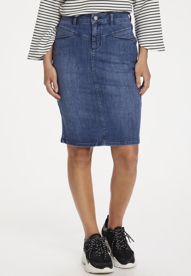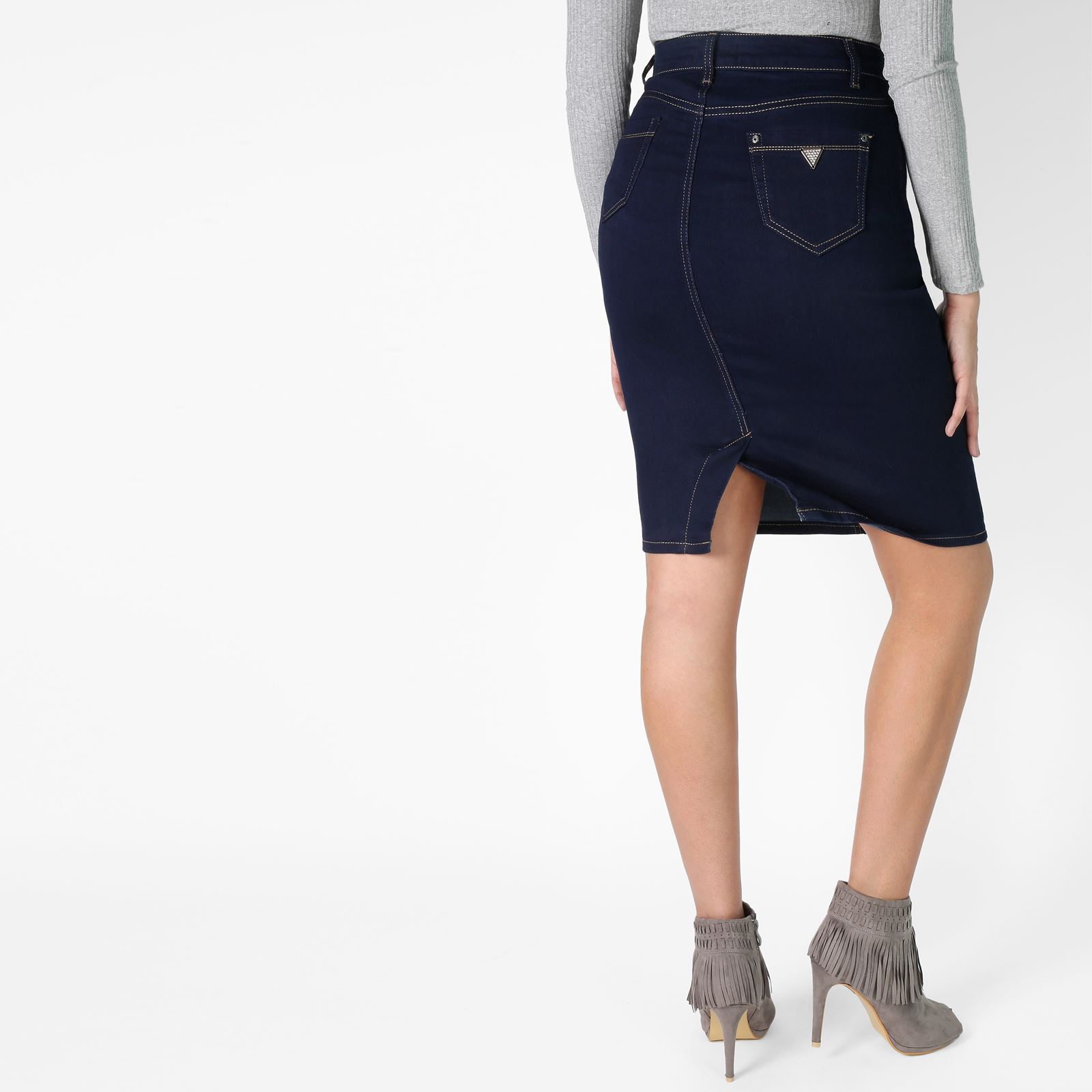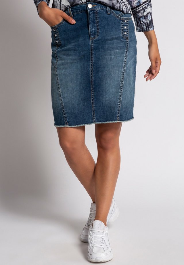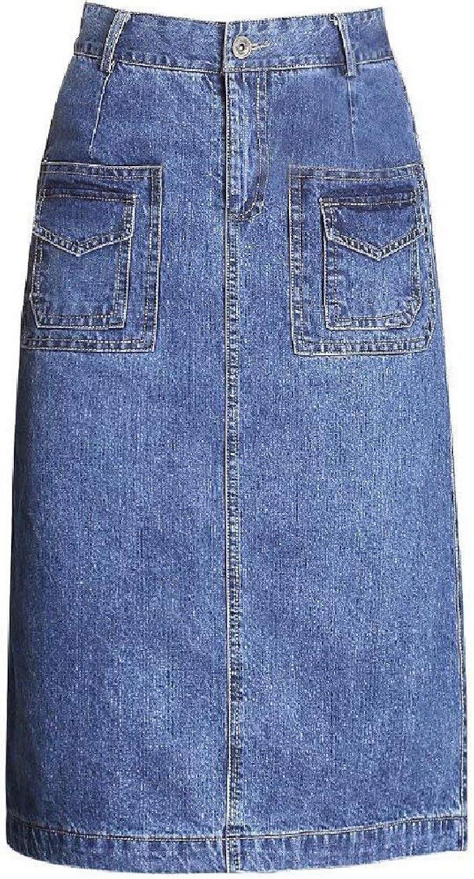 Damen Freizeit Rock Bleistift Boutique Knielang Blau Denim Jeans F Selections