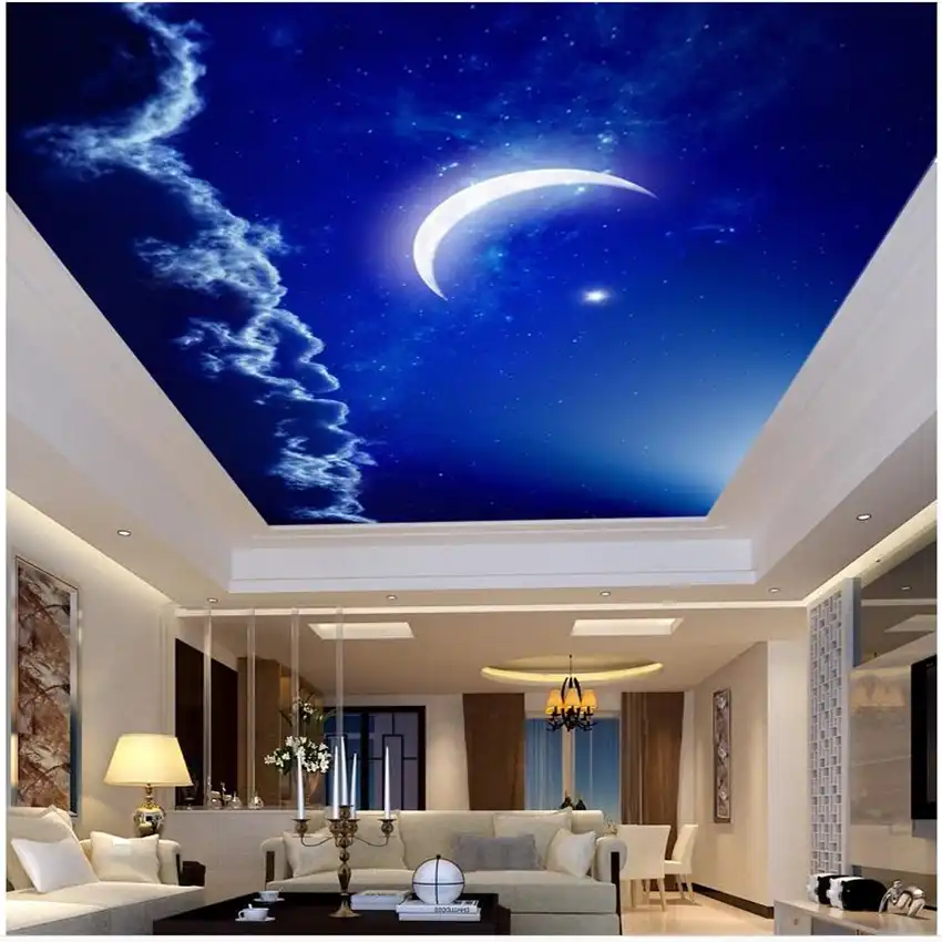 Dekoration Nacht Himmel Monat Benutzerdefinierte 3d Fotowand Papier Decke Vlies Tapete 3d Wallpaper Mural Paper Ceiling Sky Ceilingnight Sky Ceiling Aliexpress