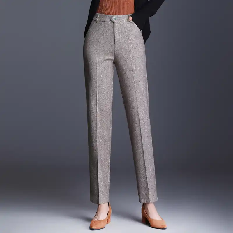 Herbst Winter Formale Wolle Gerade Hosen Buro Damen Plus Grosse Hosen Frauen Hohe Taille Anzug Hosen Fashion Professional Hose Hosen Caprihosen Aliexpress