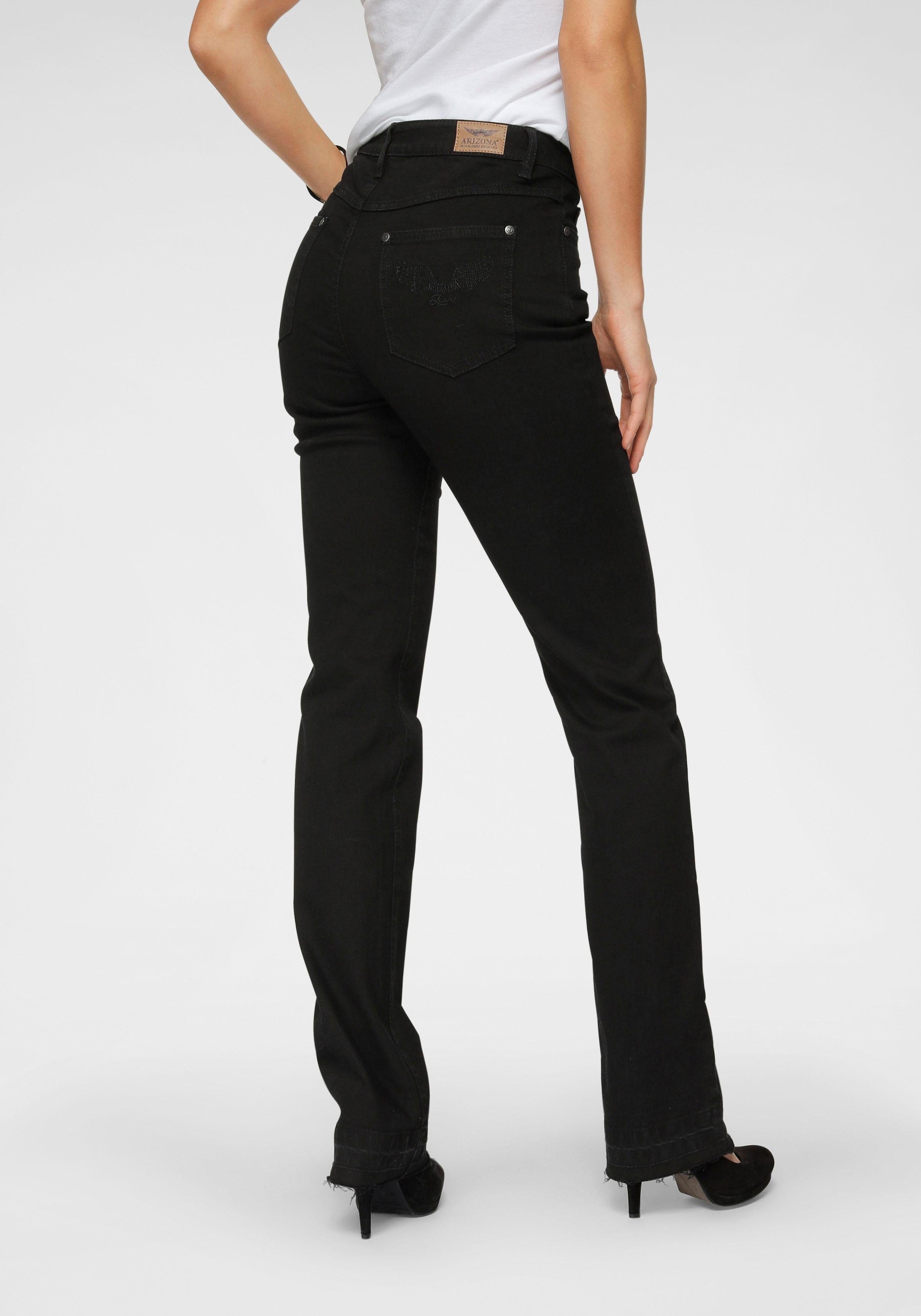 Arizona Jeans Neu Gr 34 40 Damen Gerade Hose Stretch Denim Blau Used Blue L32
