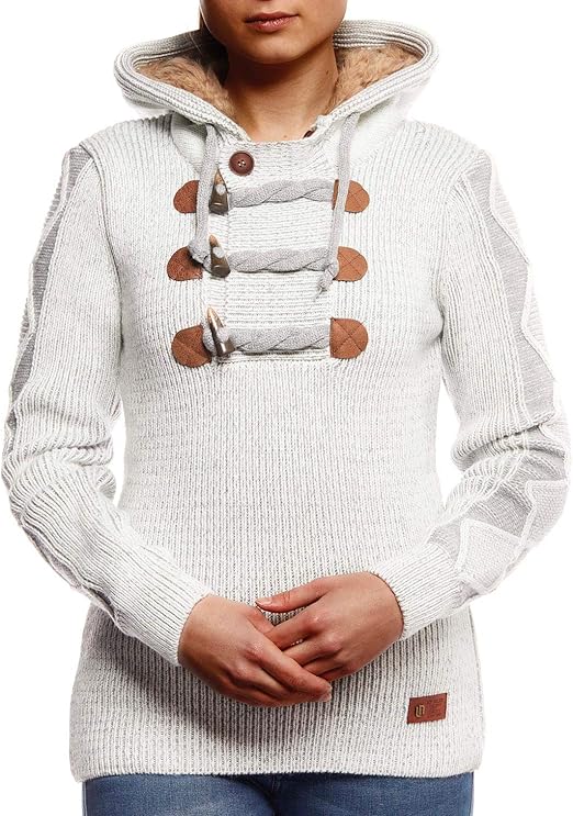 Leif Nelson Damen Pullover Mit Kapuze Slim Fit Longseleeve Schwarzer Strickpullover Sweatshirt Winterpullover Kapuzenpullover Hoodie Pulli Grau Small Amazon De Bekleidung
