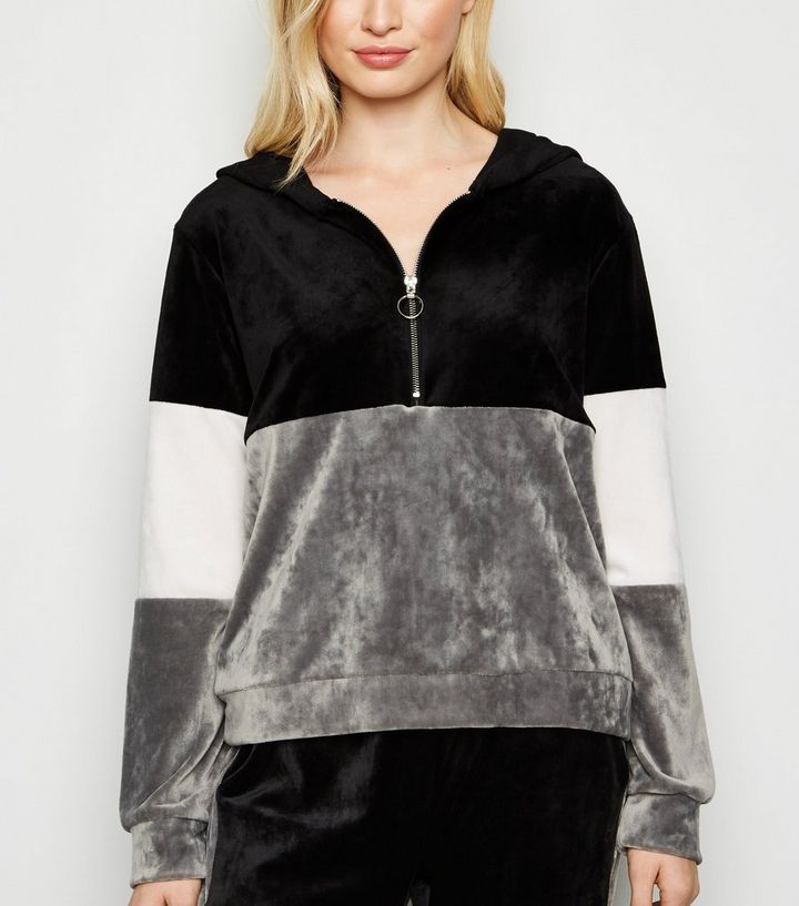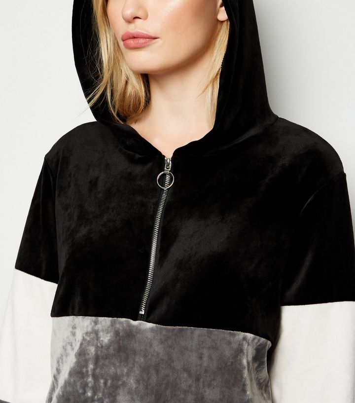 Cameo Rose Schwarzer Kapuzenpullover Aus Samt In Blockfarben New Look