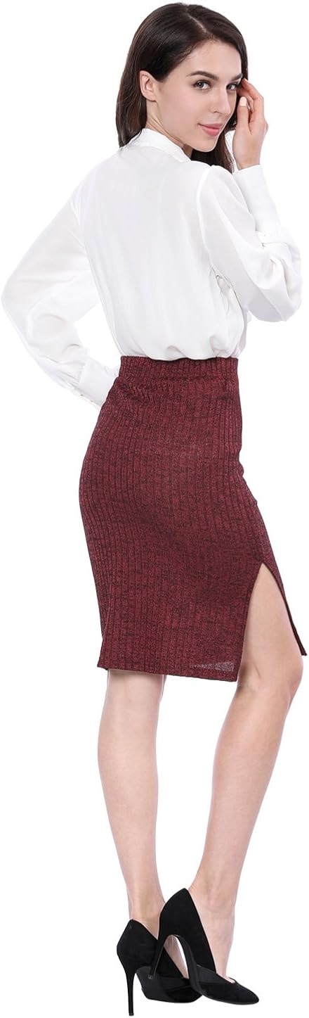 Allegra K Damen Knielang Schlitz Strick Bleistiftrock Rock Amazon De Bekleidung