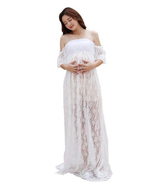 Weiss Blumen Spitze Langarm Transparente Maxikleid Umstandskleid Fur Schwangere Fotoshooting Grosse Grosse Umstandskleider Frauen Mutterschaft