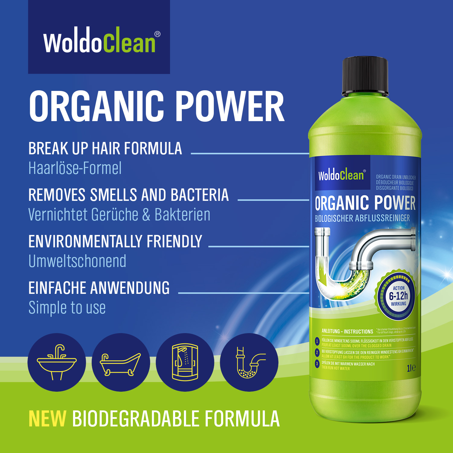Bio Chem Haar Weg Abflussfrei Flussiger Abflussreiniger Rohrreiniger Extrem Effektive Formel Gegen Verstopfungen Und Haare Fur Dusche Bad Badewanne Wc Waschbecken Kuche Siphon 1000 Ml Amazon De Drogerie Korperpflege