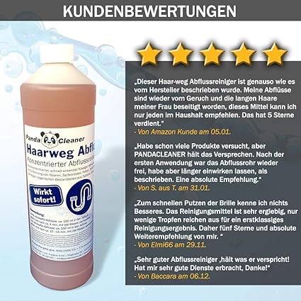 Pandacleaner Haar Weg Abflussreiniger Entfernt Hartnackigste Verstopfungen Hochkonzentrierter Rohrreiniger Abflussfrei 1000ml Amazon De Beauty