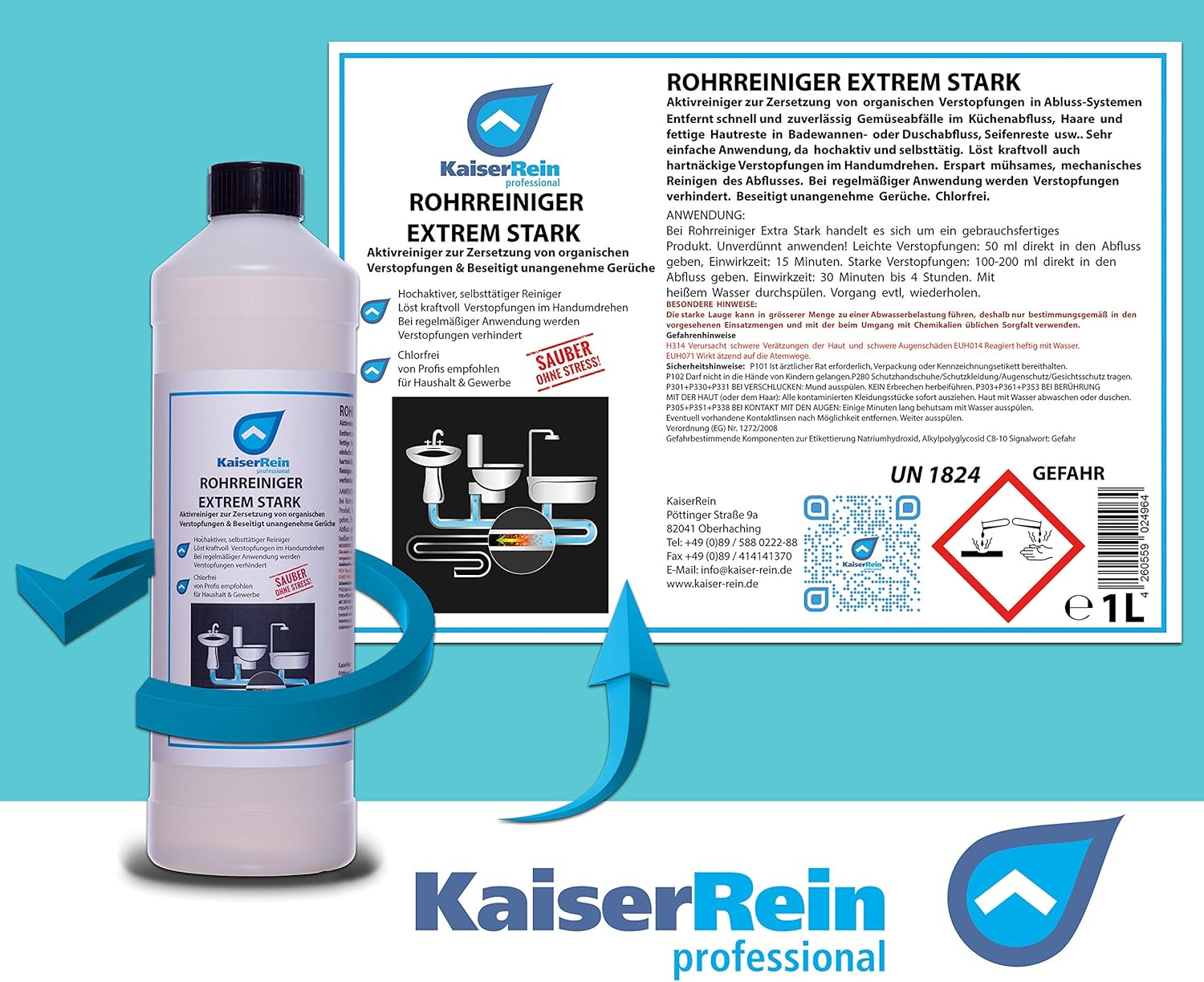 Kaiserrein 1l Profi Rohrreiniger Abflussreiniger Kraftvoll Gegen Verstopfungen I Abfluss Reiniger Flussig Fur Dusche Kuche Toilette I Abflussfrei Amazon De Drogerie Korperpflege