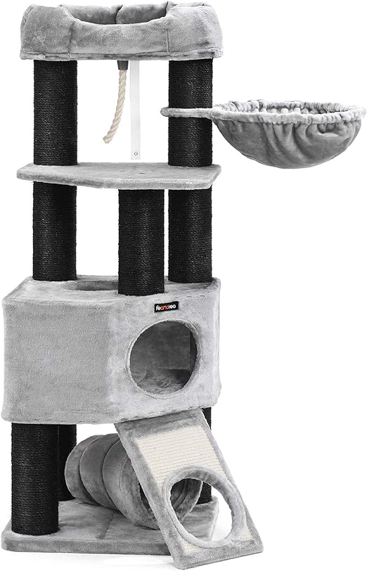 Feandrea Xxl Kletterbaum 154cm Kratzbaum Mit Hangemattenhohle Spielis In Kratzbaum Fur Grosse Katzen Kratzbaum Kletterbaum