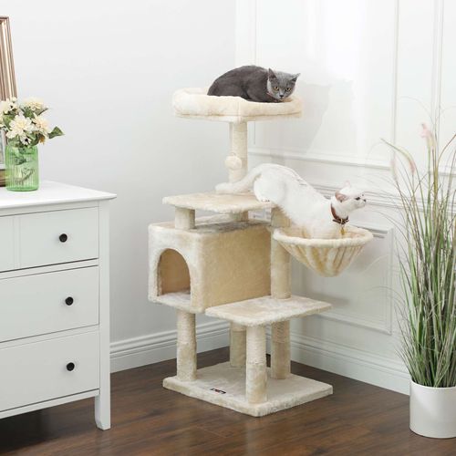 Feandrea Stabiler Kratzbaum Mit Sisal Kratzstangen Plusch Sitzmulden Einem Korb Und 2 Hauschen Kletterbaum Fur Katzen Beige Pct90m Amazon De Haustier
