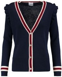 Miu Miu Virgin Wool Cardigan Knitted Purely From Soft Virgin Wool This Miu Miu Cardigan Is An Essential Take On The Class Cardigan Wool Cardigan Blue Tops