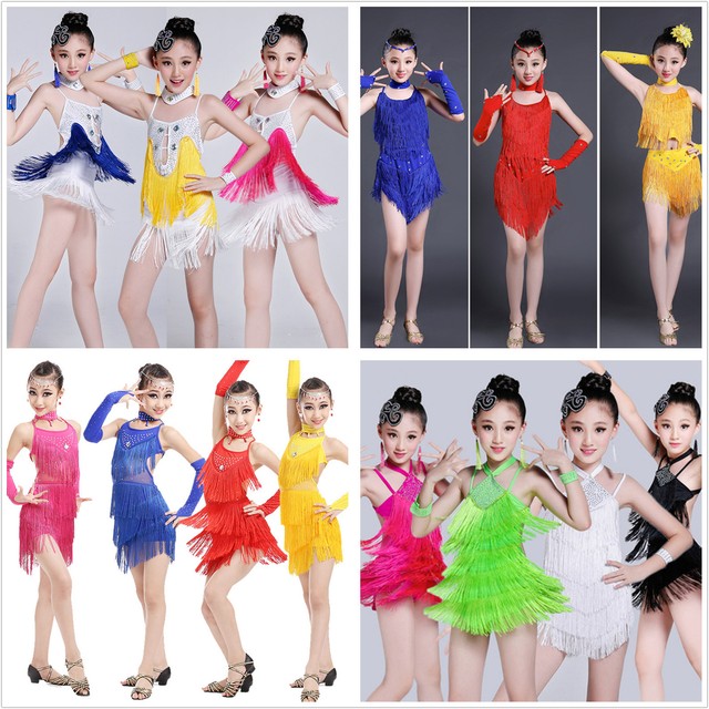 Kinder Madchen Latin Tango Tanzkostum Fransen Pailletten Rock Kleid Tanz Dance Ebay