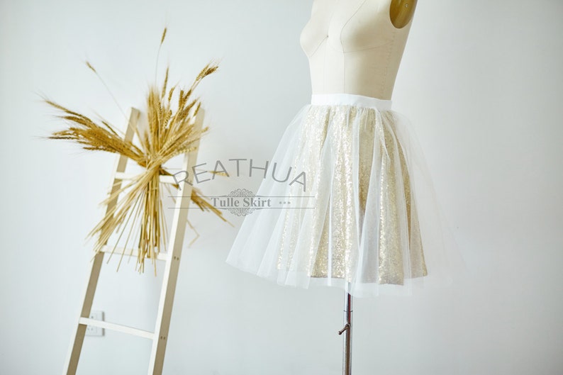 Elfenbein Tull Rock Gold Pailletten Rock Short Erwachsene Etsy
