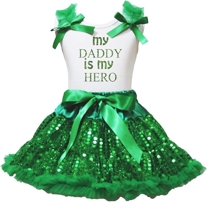Petitebelle Bling Daddy Is My Hero Shirt Kleid Grun Pailletten Rock Madchen Kleidung Set 74 Bis 122 Bekleidungssets Amazon De Bekleidung