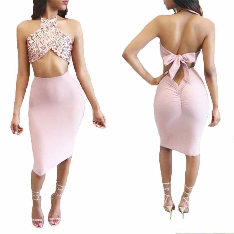 Grosshandel Damen Zwei Stuck Rosegold Pailletten Rock Top Sexy Bodycon Midi Neckholder Kleid Wackeln Bleistift Kurz Prom Zwei Stuck Clubwear Kleid Von Honeyclub 14 Auf De Dhgate Com Dhgate