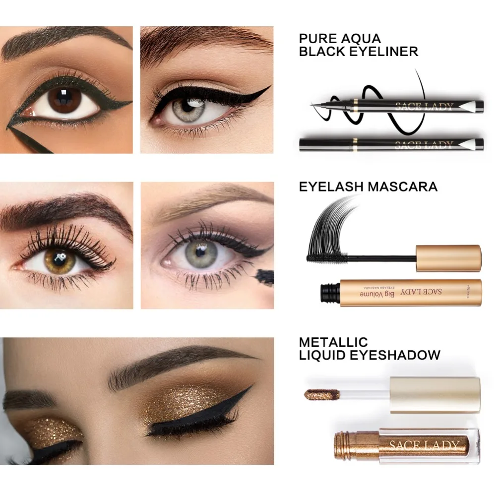 Sace Dame Professionelle Augen Make Up Set Glitter Lidschatten Schwarz Eyeliner Mascara Make Up Lidschatten Kit Marke Wasserdichte Kosmetische Spargut Innovative Produkte Zu Top Preisen