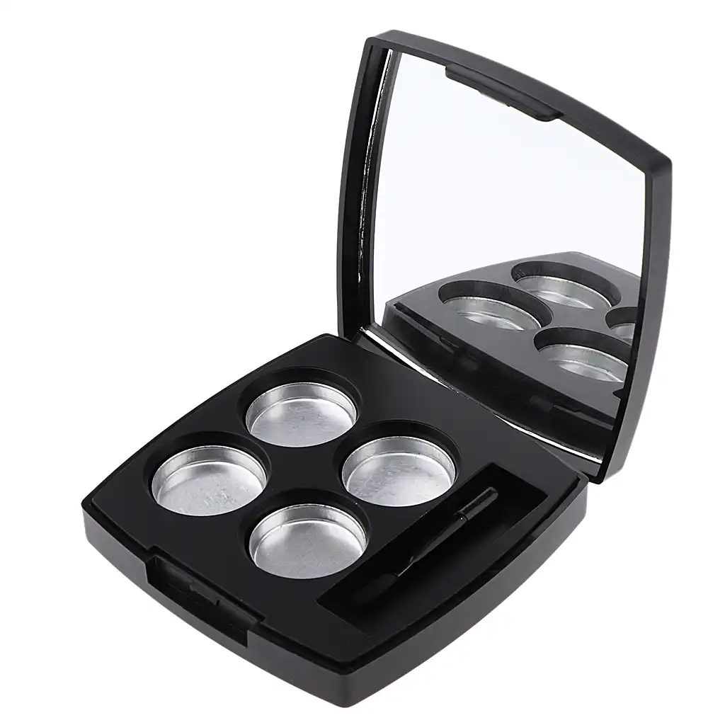 Schwarz Leer Make Up Lidschatten Gedruckt Pulver Behalter Fall 4 Runde Aluminium Pfannen Palette Mit Spiegel Und Pinsel Lidschatten Applikator Aliexpress