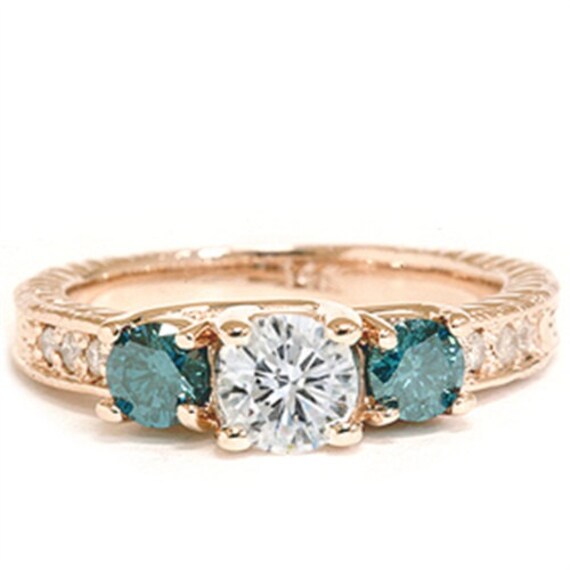 Rose Gold Diamant Verlobungsring 3 Stein Blue Diamond Ring Etsy