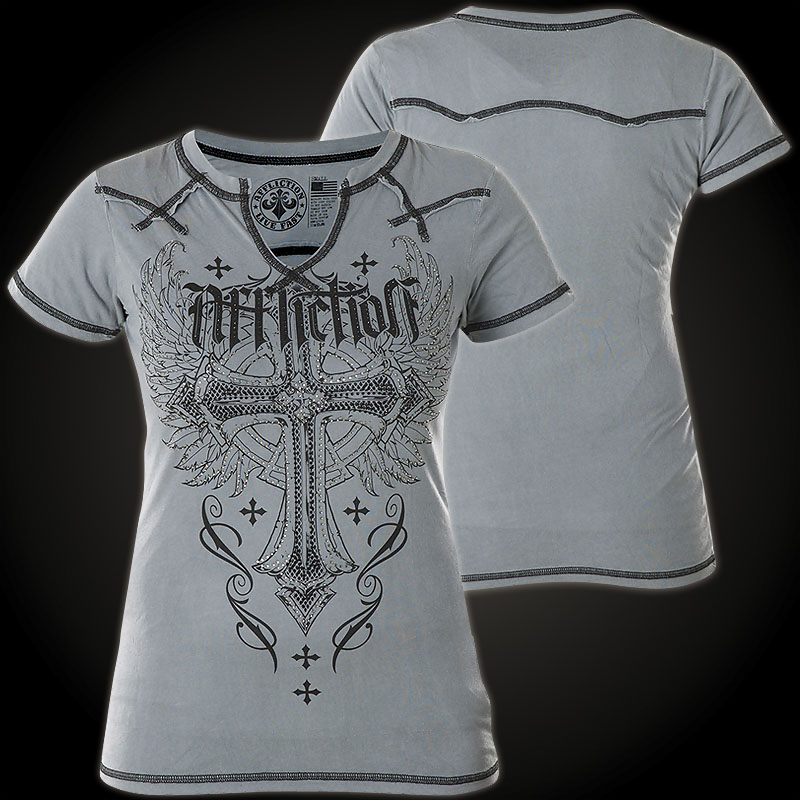 Affliction T Shirt Cashmere Mit Grossem Kreuz