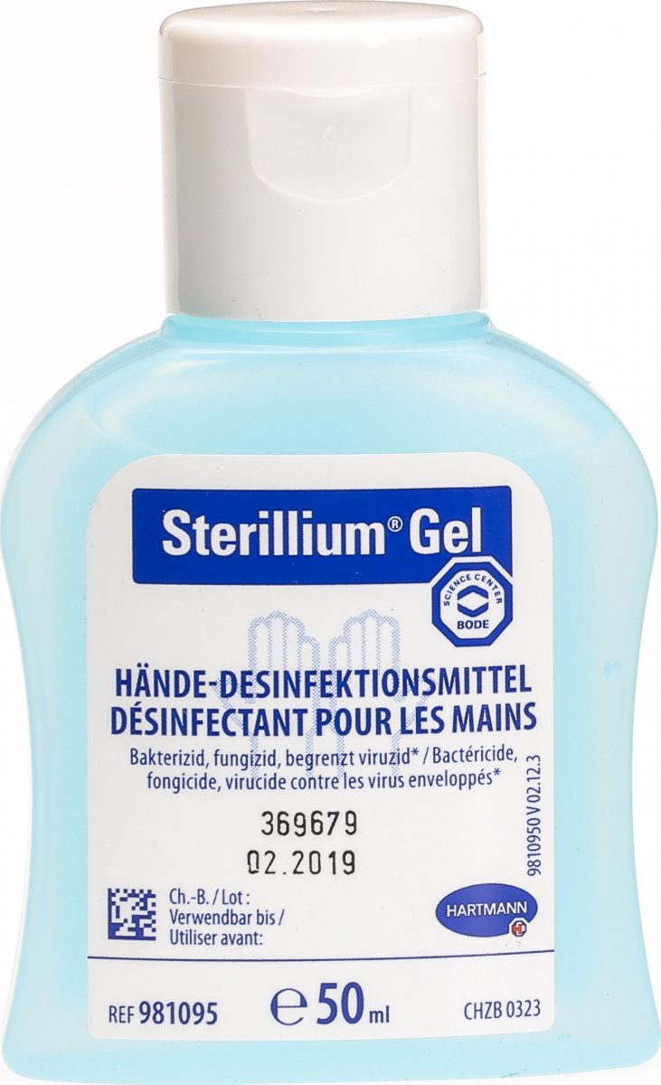 Sterillium HändeDesinfektion Gel bei ihrer Online Apotheke Vamida ab 4,31 € kaufen und bis zu 18% sparen. 1)Kampf G, Muscatiello M, Häntschel D, Rudolf M 02 Dermal tolerance and effect on skin hydration of new ethanolbased hand gel Journal of Hospital Infection;. Unterwegs kommen unsere Hände mit besonders vielen Bakterien und Viren in Kontakt Gründliche Handhygiene ist dann oft nötig, doch nicht immer möglich Hierfür bietet das antibakterielle Sagrotan Desinfektion Handgel eine hygienische Reinigung der Hände auch ohne Wasser Das Sagrotan Desinfektion Handgel entfernt 99,9% der Bakterien.