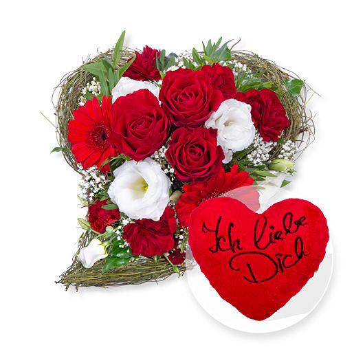 Blumenstrauss In Herzform Und Kuschel Herz Ich Liebe Dich Blumen Online Bestellen Bundesweit