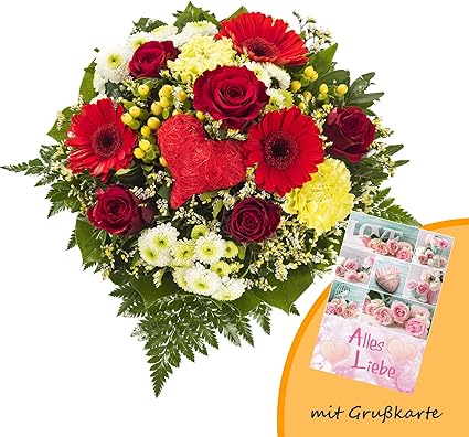 Dominik Blumen Und Pflanzen Blumenstrauss Herzensfreude Und Grusskarte Alles Liebe Amazon De Garten