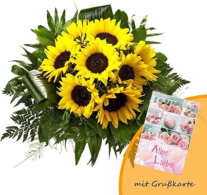 Dominik Blumen Und Pflanzen Blumenstrauss Flower Power Mit 8 Sonnenblumen Und Grusskarte Alles Liebe Amazon De Garten