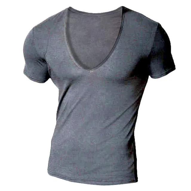 T Shirt Mit Tiefem V Ausschnitt Fur Herren Tiefer Schnitt Stretch Unsichtbar Vee Top Kurzarmelig Gr S Grau Amazon De Bekleidung