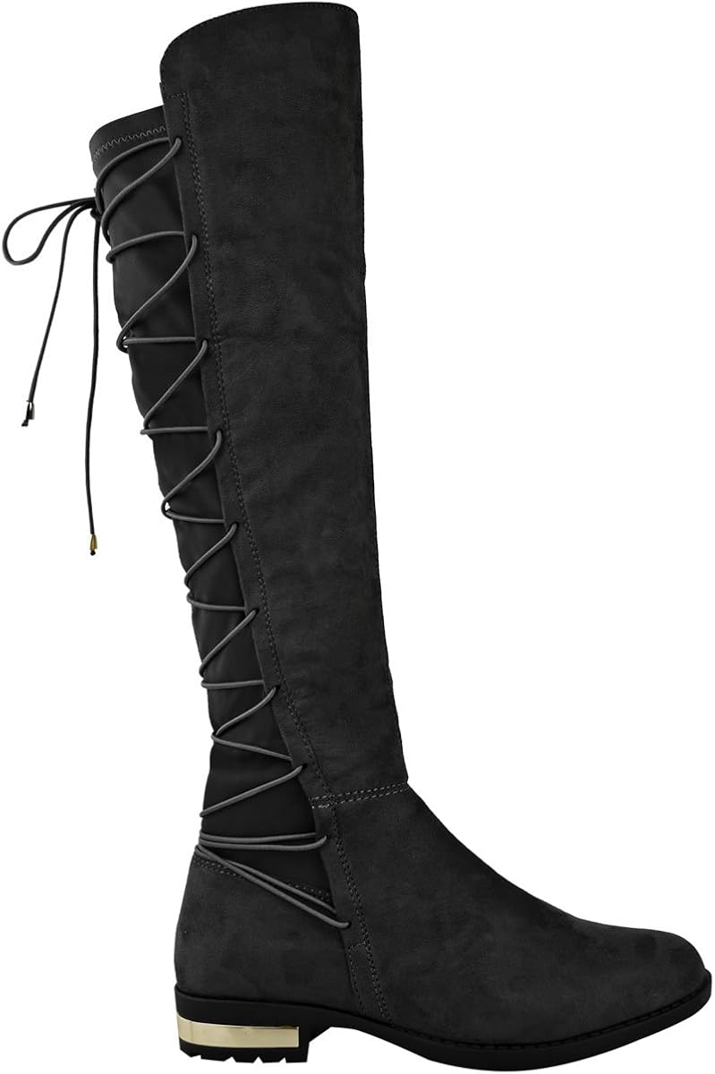 Stretch Faux Wildleder Oberschenkel Hohe Stiefel Frauen Uber Das Knie Stiefel Flache Ferse Sexy Mode Herbst Winter Grosse Grosse Schuhe 19 Schwarz Grau Thigh High Boots Over Knee Boots Flatknee Boots Aliexpress