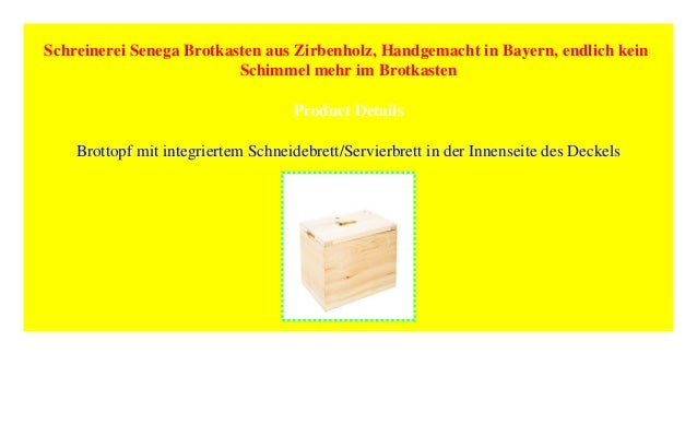 Schimmel auf Holz ist bei Möbelstücken in den meisten Fällen nur ein kosmetisches Problem Wie Sie ihn von Holz entfernen und wann Schimmel bei baustatisch relevanten Balken ein Problem ist, lesen Sie in folgendem Artikel. Holz ist ein lebendiger Werkstoff und hat durch die Hygroskopizität die Eigenschaft, Wasser aufnehmen und abgeben zu können Dieses Prinzip macht sich auch im Brotkasten bemerkbar Dadurch kann das Holz "atmen" Es nimmt zu viel Feuchtigkeit vom Brot auf und gibt diese auch wieder ab Der Inhalt bleibt somit länger frisch Unbehandelte. “Zurück zur Natur” ist ein starker Trend, der sich durch alle Lebensbereiche zieht Da Chemie und Plastik bekannte Krankheitsauslöser sind und die Umwelt vor einem Müllproblem steht, besinnen sich viele Menschen auf ursprüngliche Produkte Eins davon ist der Brotkasten aus Zirbenholz Ein Brotkasten aus Holz ist ein gewohntes Bild in der Küche Das natürliche Material ist preiswert.